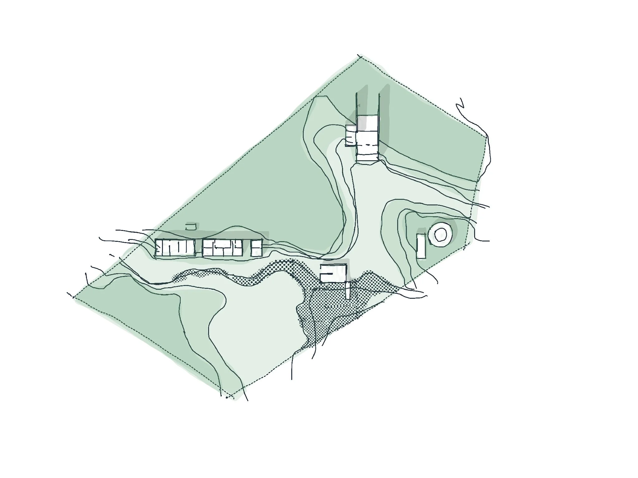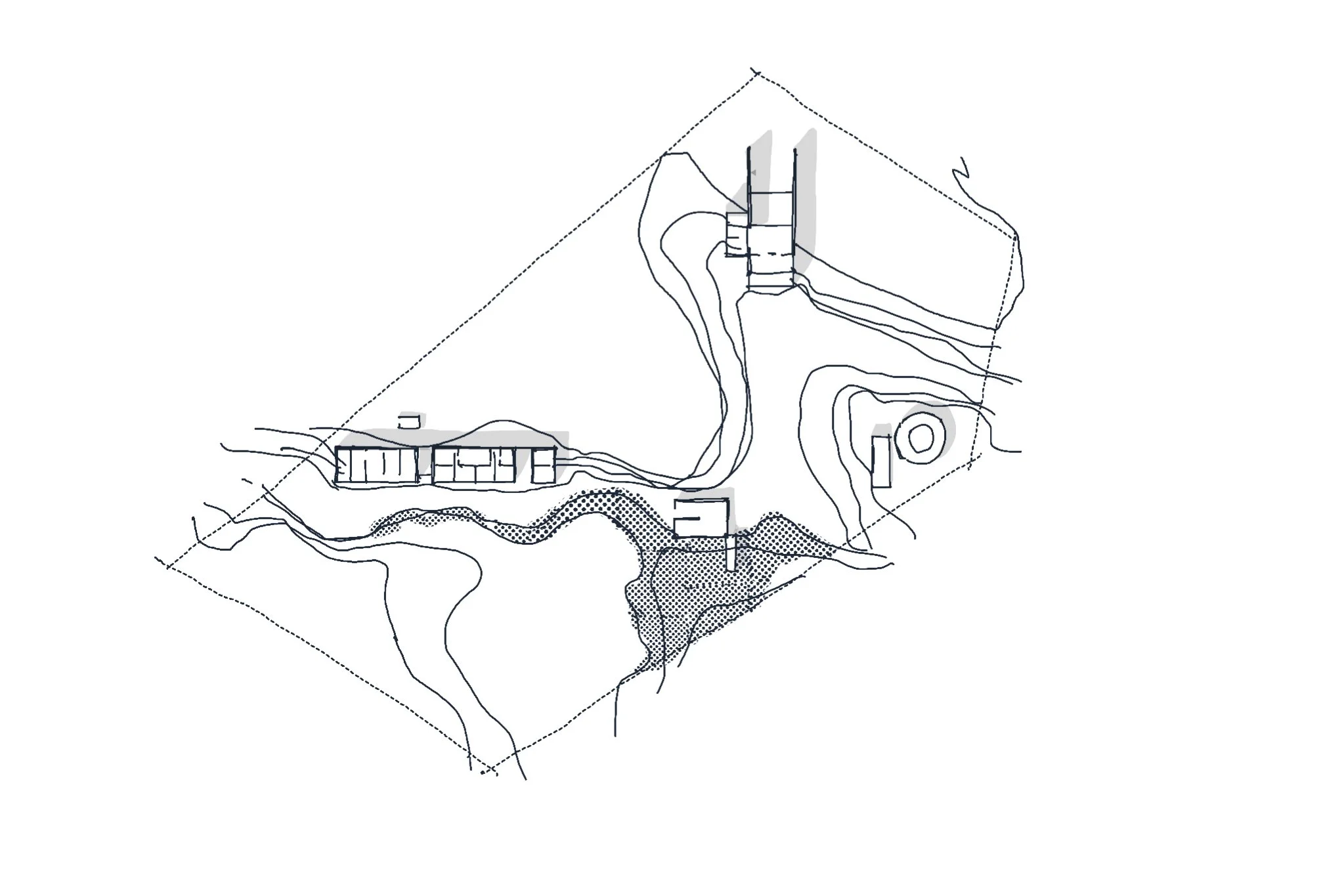 El Concepto general del proyecto es habitar en el campo, respetar a la naturaleza y generar condiciones para que exista cada vez mayor diversidad y armonía en el predio. La Casa Río, ubicada en una ladera habitada por una gran diversidad de especies, implica una responsabilidad de cuidado. Todo el proyecto promueve la infiltración del agua al subsuelo, promueve la producción de materia orgánica y su captura. El Paisaje infraestructura busca crear una gran “trampa” en materia fértil y en agua.
