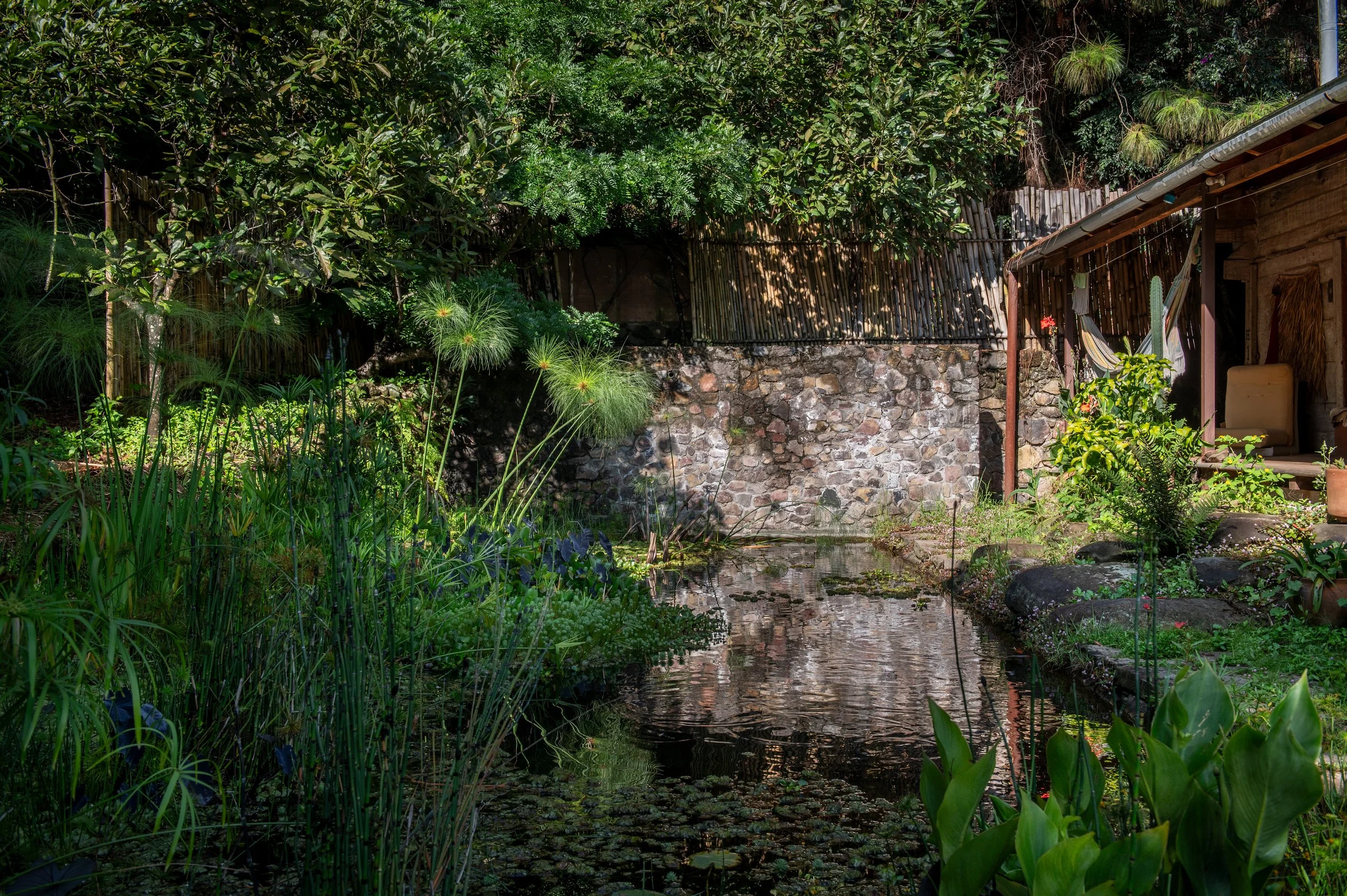 La piscina de flor y canto es una pieza única que está conformada como un sistema vivo. Más que una piscina o biopiscina nos gusta llamarlos cuerpos de agua: sistemas vivos complejos que están conformados por cientas de interacciones entre agua, luz, plantas, animales, bacterias, algas, etc.